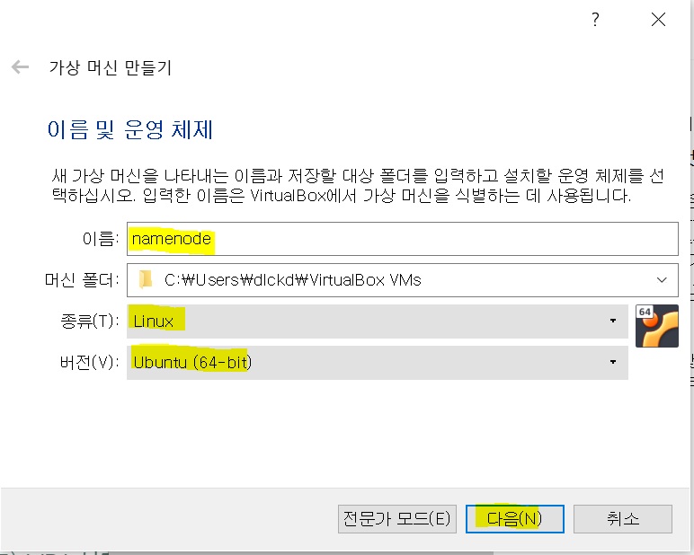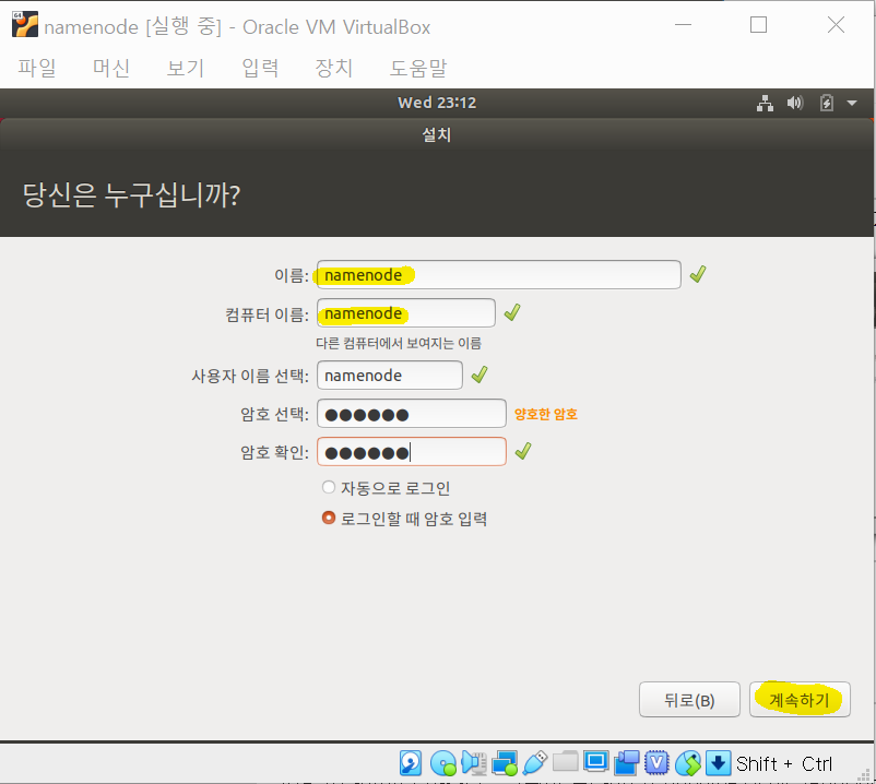 이름/ 컴퓨터 이름/ 사용자 이름은 사용자에 맞게 설정하면 됩니다.