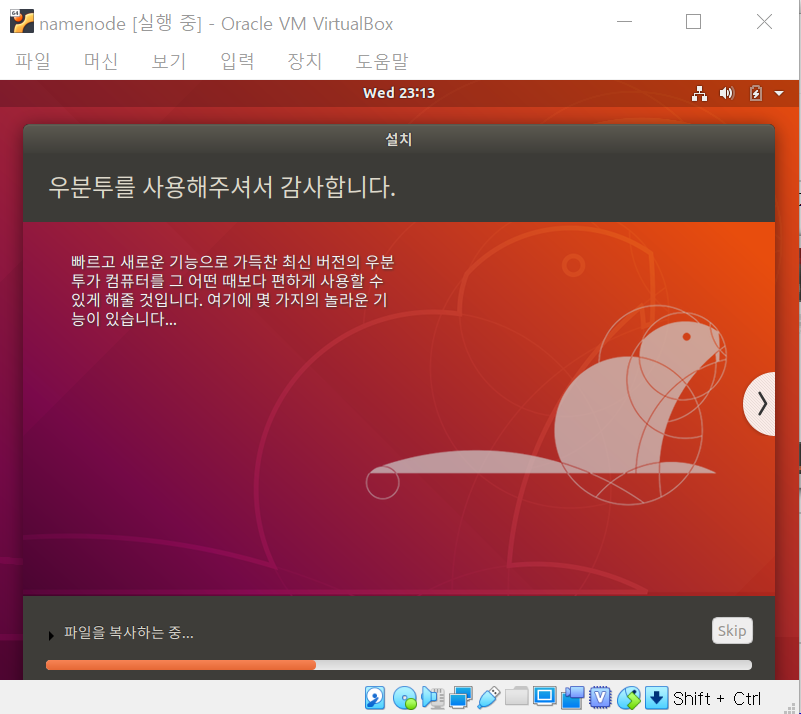 4-8. 우분투 설치 중(기다리면 됩니다)